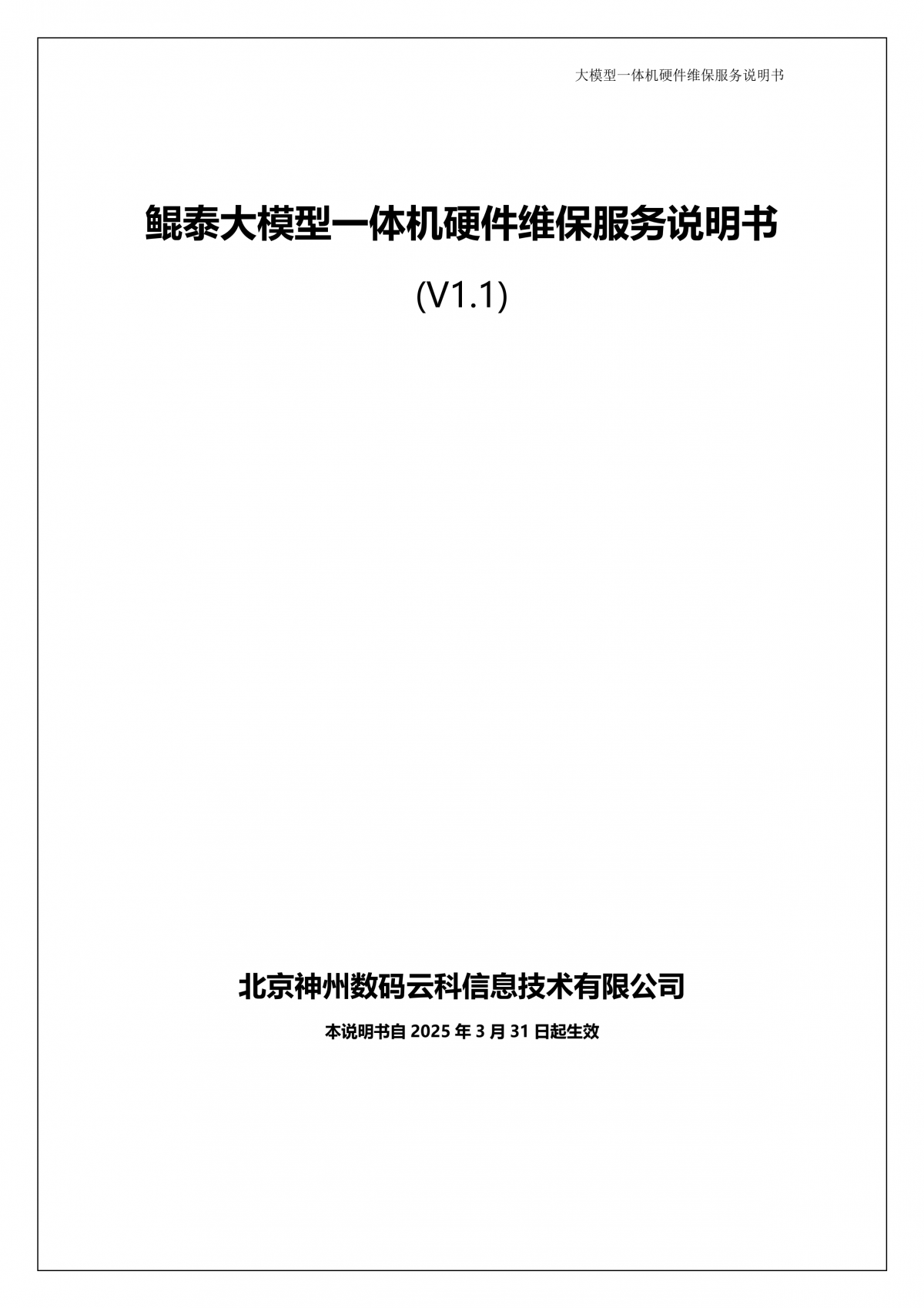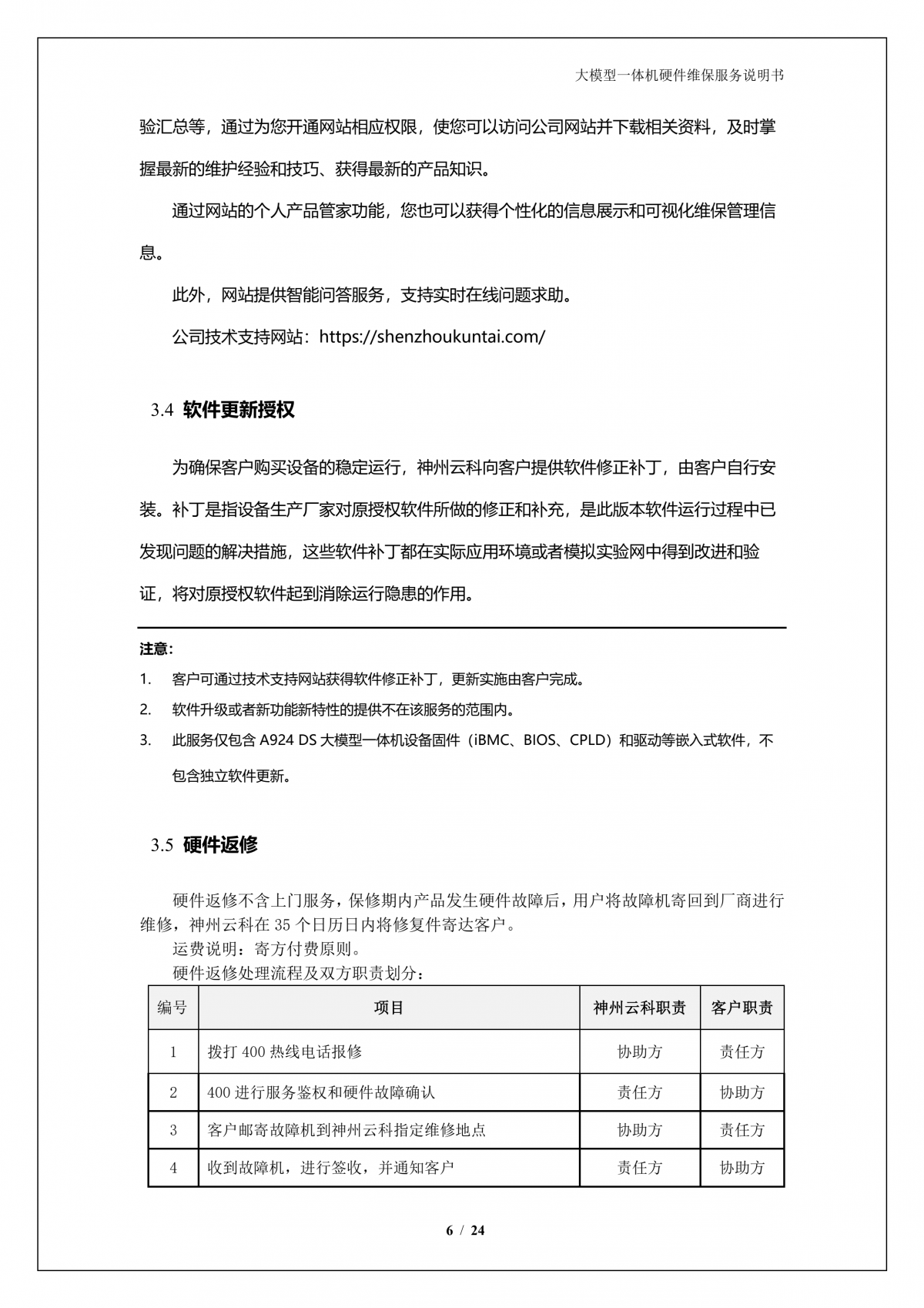 k8凯发A924 DS大模型一体机硬件维保服务说明书_V1.1